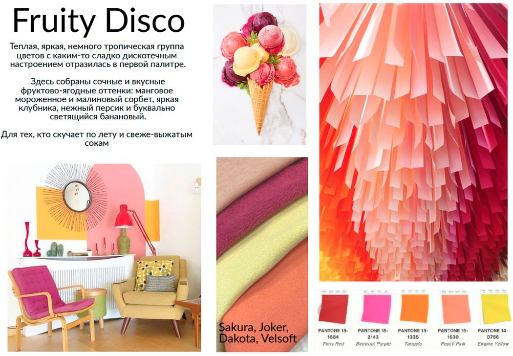 Теплая, яркая, немного тропическая группа цветов с каким-то сладко дискотечным настроением отразилась в первой палитре. Здесь собраны сочные и вкусные фруктово-ягодные оттенки: манговое мороженное и малиновый сорбет, яркая клубника, нежный персик и буквально светящийся банановый. Для тех, кто скучает по лету и свеже-выжатым сокам