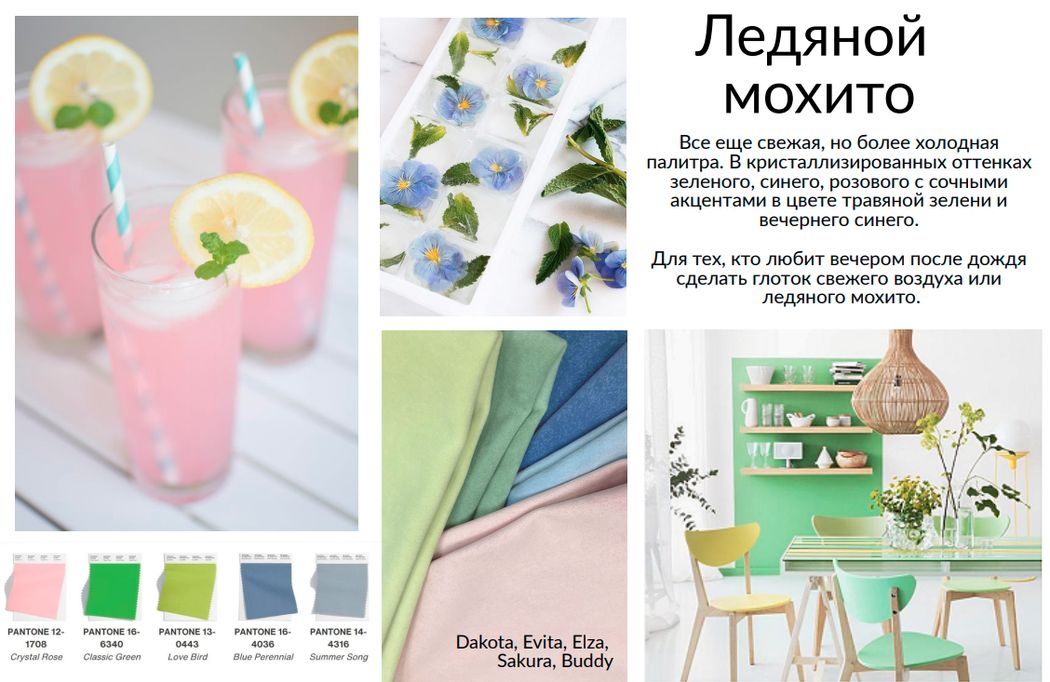 Все еще свежая, но более холодная палитра. В кристаллизированных оттенках зеленого, синего, розового с сочными акцентами в цвете травяной зелени и вечернего синего. Для тех, кто любит вечером после дождя сделать глоток свежего воздуха.